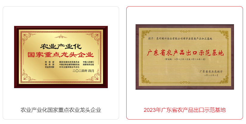 唐順興以其卓越的品質(zhì)和廣泛的市場(chǎng)覆蓋,成為了行業(yè)內(nèi)的佼佼者。公司通過了CIQ認(rèn)證,養(yǎng)殖基地被國(guó)家農(nóng)業(yè)部認(rèn)定為畜禽養(yǎng)殖標(biāo)準(zhǔn)化示范場(chǎng)、廣東省現(xiàn)代化美麗牧場(chǎng)等多項(xiàng)榮譽(yù)稱號(hào)。唐順興的乳鴿等標(biāo)桿產(chǎn)品已獲廣東省名牌產(chǎn)品、無公害農(nóng)產(chǎn)品、粵字號(hào)農(nóng)產(chǎn)品認(rèn)定,品質(zhì)有保障。此外,“唐順興”商標(biāo)還榮獲廣東省著名商標(biāo)稱號(hào),品牌影響力不斷提升。
